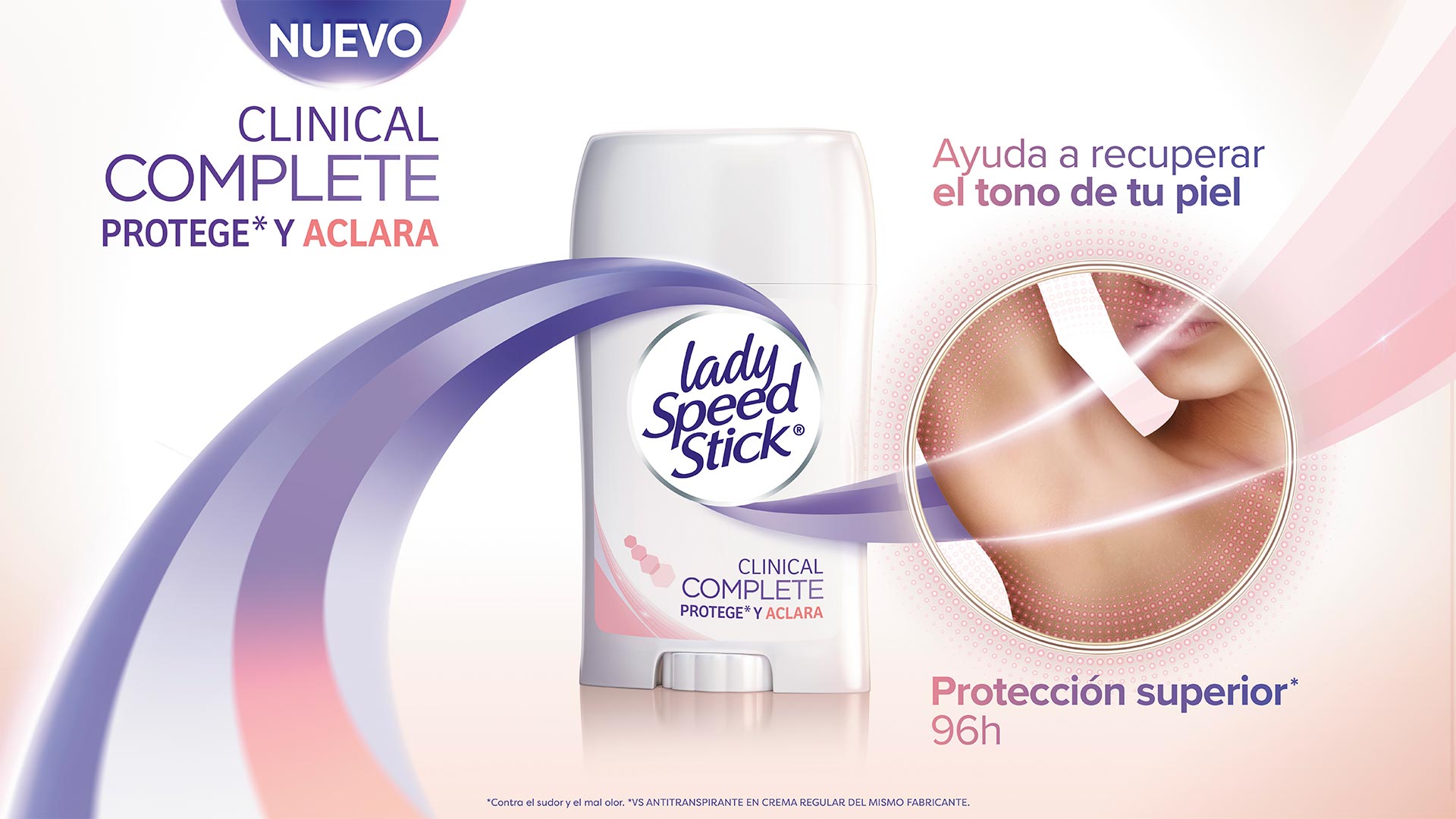 Lady Speed Stick® Clinical Complete Antibacterial**, la tecnología de protección más avanzada***: