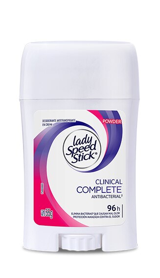 Nuestra más avanzada y Completa Protección contra el sudor. Desodorante Antitranspirante Clínico en crema Lady Speed Stick Clinical Complete 55g