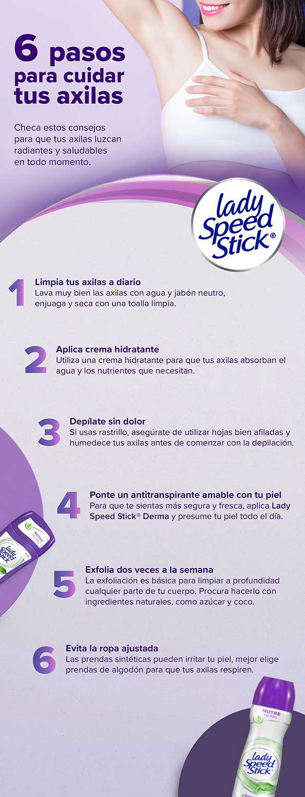 Sigue estos consejos y te sentirás mucho más segura y confiada a la hora de mostrar tus axilas. Pero recuerda que todas las axilas son diferentes y lo más importante es tenerlas sanas y protegidas. Por eso elige un antitranspirante que te permita ser tú misma y estar cómoda en todo momento.