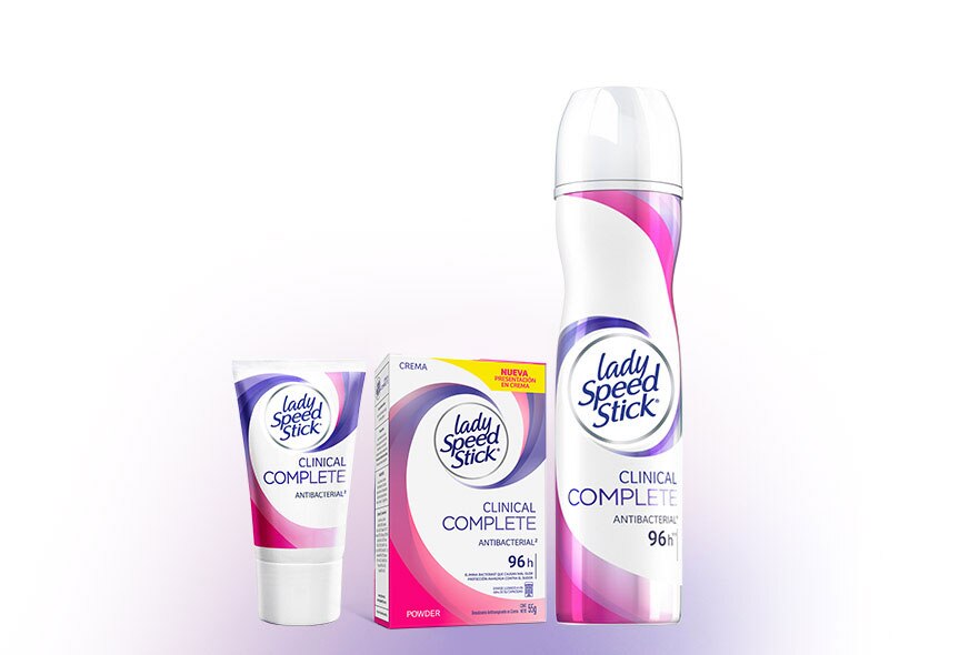 Lady Speed Stick® Clinical Complete Antibacterial**, la tecnología de protección más avanzada***: